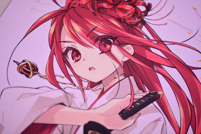 桌墊上的夏娜臉部特寫,印刷非常精美