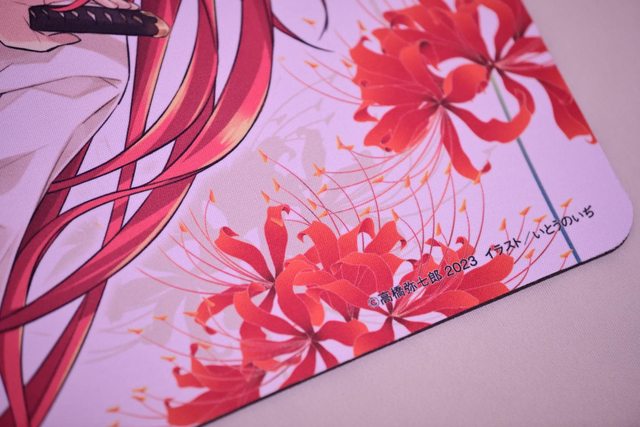 桌墊上的彼岸花特寫,也有高橋老師和伊東老的名字