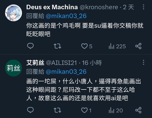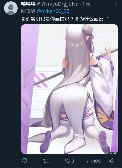 三天前這名繪師在推特發文說妮姬的愛蜜莉雅是她負責的 https://twitter.com/mikan03_26/status/1771425650236334533 有幾位素質不錯的中國人在下面酸言酸語 https://i.imgur.com/aSAcWDj.jpg