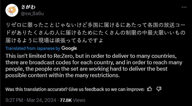作為回應,角色設計師悲傷地確認道:"這不僅限於《Re:從零開始的異世界生活》,而是