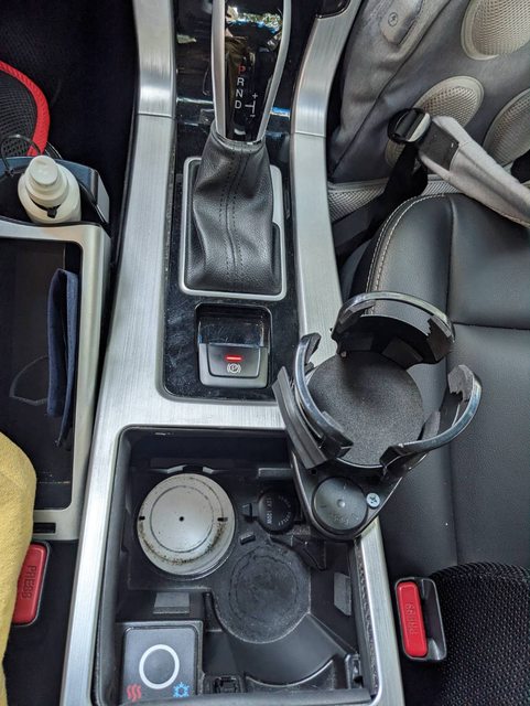 置杯架實在太小, 所以我有把蓋子拆了丟掉, 然後直接鑽孔, 如附圖.