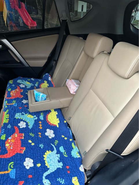 ,儀表板有鋪防曬的墊子,後座也都是用座墊,雖是米色內裝但很新!