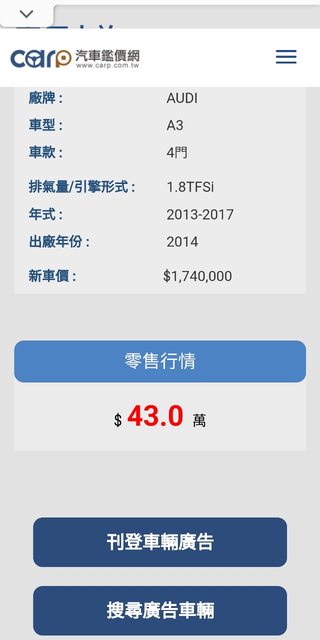 推 a70327cow: 2014 A4 新車185萬 單看售價+保固 是 1.171.168.146 06/22 11:48