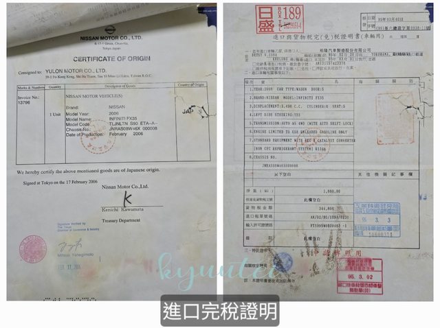 車輛品牌/產地/出廠年月:INFINITI / 日本 / 2006年02月