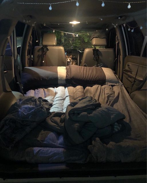 後座拿掉,擺上充氣床墊兩個人睡剛剛好