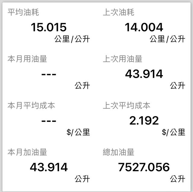 平均油耗:15