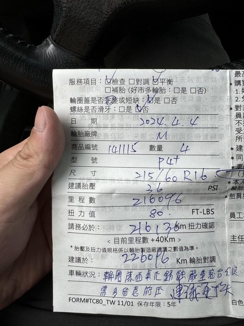 今年四月於好市多裝上,僅跑6,500公里左右,幾乎都跑高速。因為接手親戚的車子,舊車要拿去報廢了。