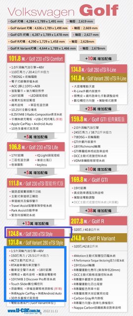 車款型式/排氣量:Golf Style 1.5L eTSI Style /1500cc