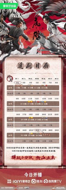 大家一起來看降妖小分隊闖蕩江湖斬妖除魔的故事。 衝著張凌赫跟蔣龍的預告感覺可以來看一下! 第一集冰塊臉禦妖師隊長祁曉軒出場有帥跟吃百家飯長大機靈又有點煩的虎子搭檔應 該蠻有趣的! 滿期待張凌赫接這個看起來滿聰明跟很高冷又有潔廦的腳色!!!來看看白目的虎子何時可 以?還是不要感化好,相知相惜比較重要. 10/9更新新的追劇日曆,不斷更至10/19END https://i.imgur.com/E6wNKZc.jpg