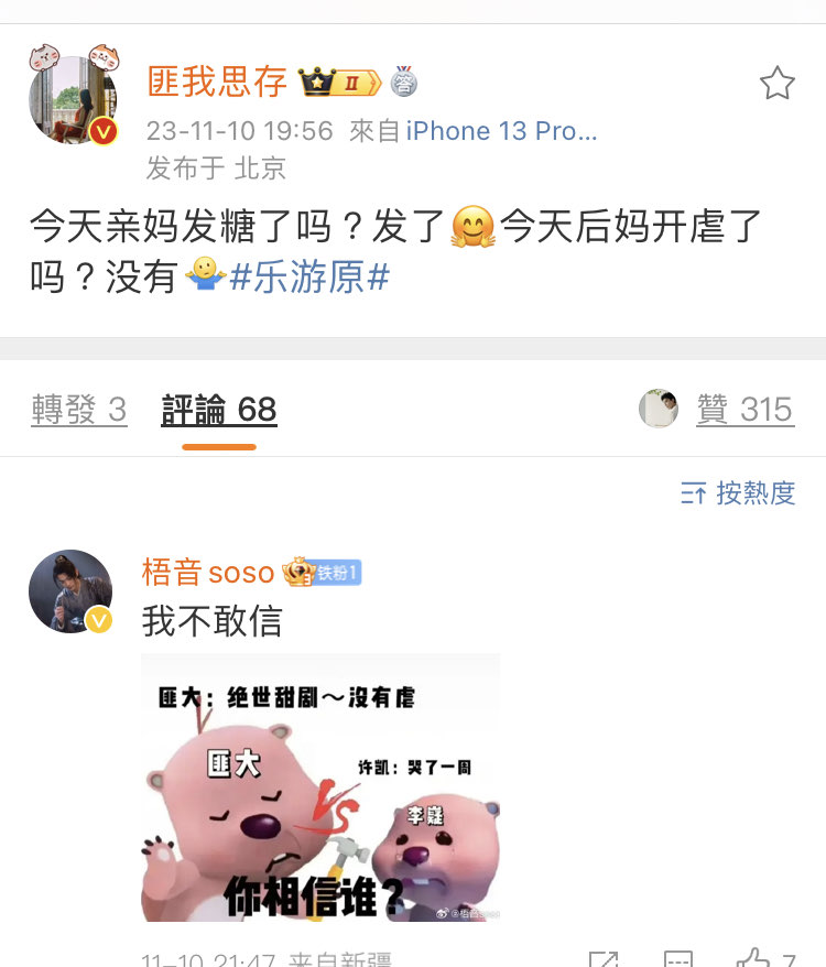 hueisung: 好奇他們本名,我在微博上看到陳醒掛了我哭比他們家公子 11/11 01:10