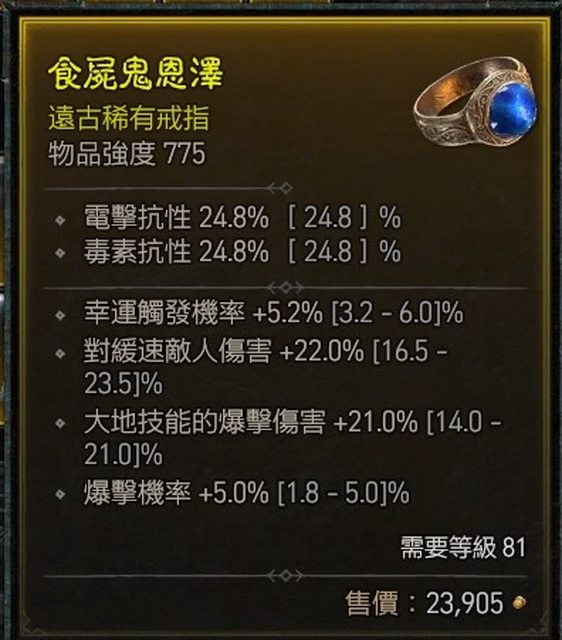 標題[競標] D4 幸運 頂爆擊 頂大地爆傷 81戒指