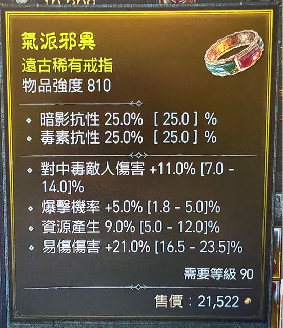 標題[競標] D4 頂爆率/易傷/資源/毒傷戒指