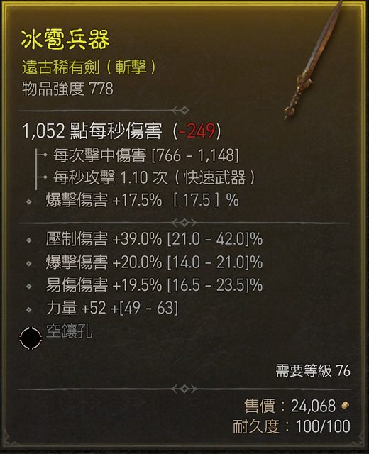 標題[競標] D4 76等 野蠻人 力量 爆傷 易傷 單手劍