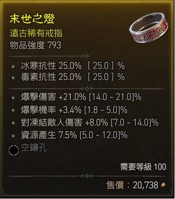 標題[競標] 100等戒指 爆率/爆傷/資源產生