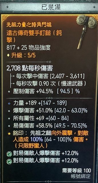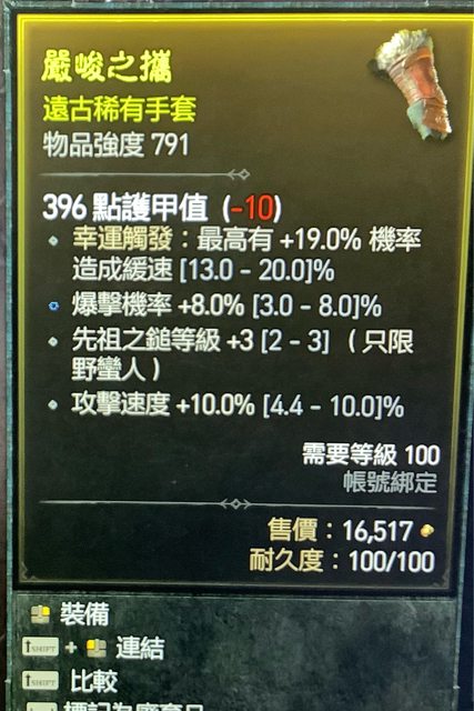 因為原本已經有+4先祖手套(近頂攻速、近頂爆率),上面那個原本想拿來賣版友