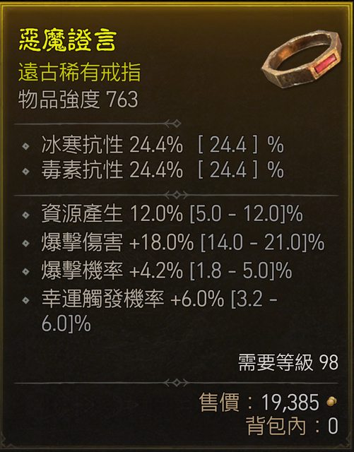 標題[競標]D4 98等 頂資源 近頂爆傷 近頂爆率