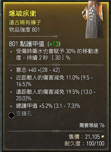物 品:D4 減傷褲子 近距減傷11% 遠距減傷19% 護甲5.2%