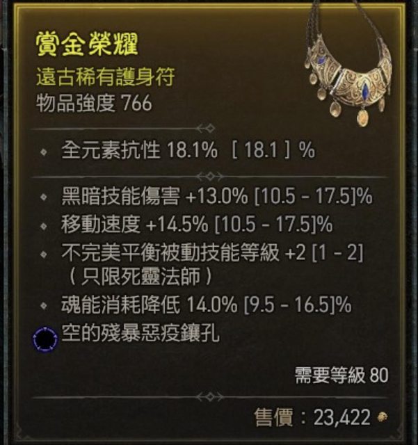 標題[競標] D4 賽季 死靈項鍊(藍孔80級)