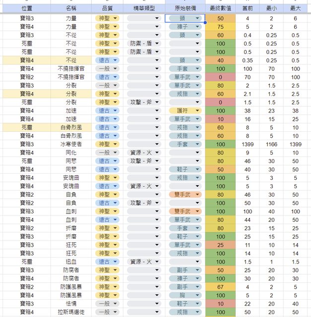 紀錄品質跟裝備或類型,就可以快速找到每個已拆或未拆的精華