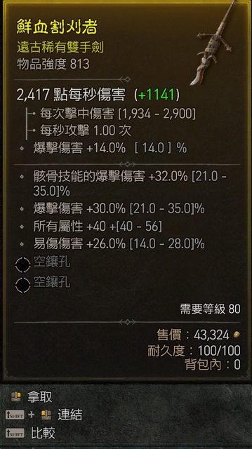 標題[競標] D4 S1 死靈雙手劍 3屬接近頂標