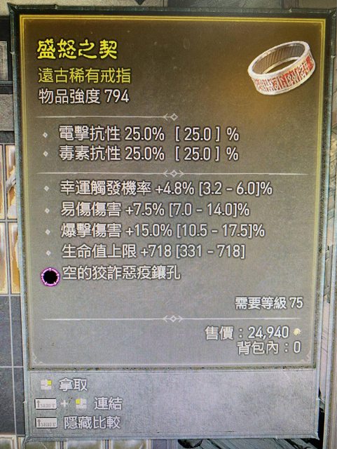 標題[競標] D4 賽季 75等戒指 (幸運、易傷、爆傷、