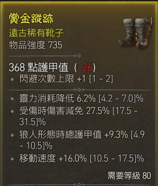 標題[競標] D4 S1 狼德鞋 跑速/減耗/護甲
