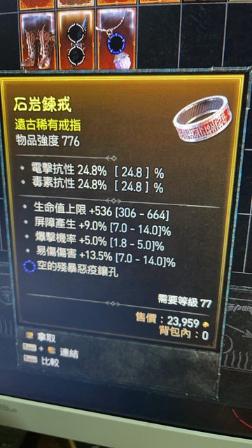 標題[競標] 石岩鍊戒 生命爆擊爆傷 殘爆孔