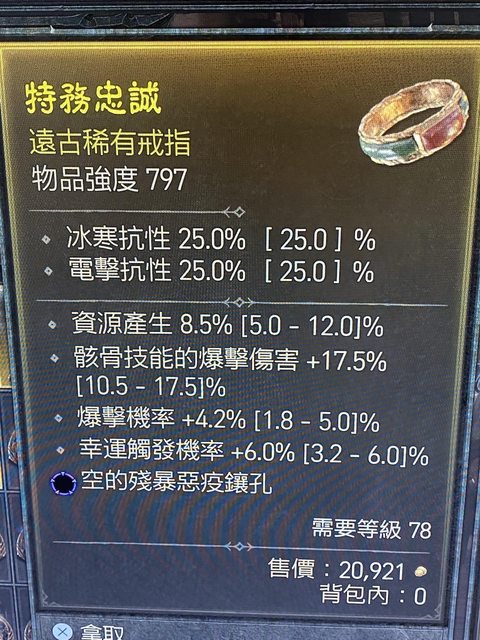 標題[競標] D4 賽季 近頂爆/幸/骨爆傷/資源戒指