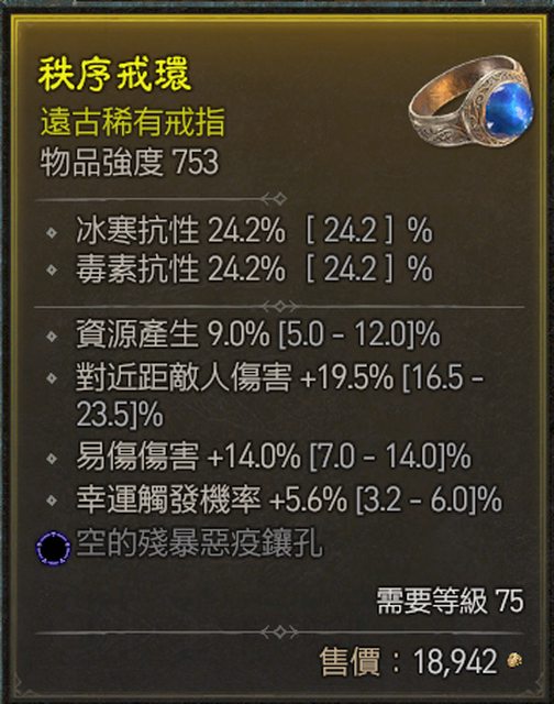 標題[競標] D4 S1 戒指 頂易傷/近頂幸運/資源 藍孔