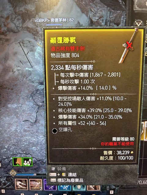 物 品:頂核心爆傷 近頂全屬 800up雙手劍