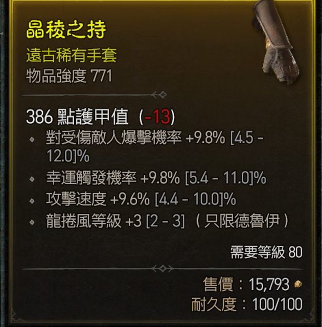 標題[競標] D4賽季 速標 近頂攻速/幸運龍捲風手套