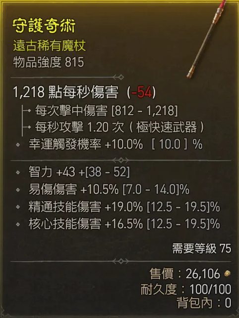 標題[競標] D4 賽季 815單手杖 智力易傷核心精通