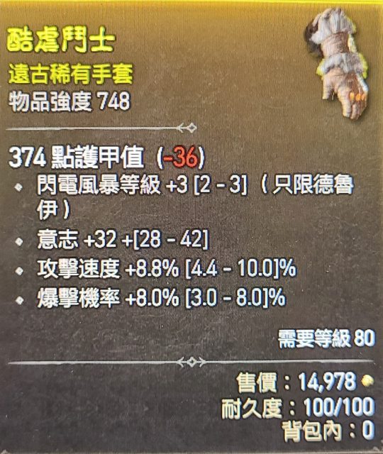 標題[競標] D4 S1 電狼手套 攻速 爆率頂