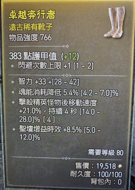 標題[競標] D4 S1 遠古鞋(智力/魂能消耗/擊殺精英移