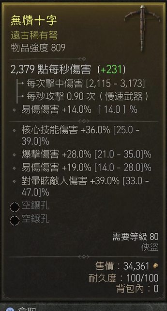 標題[競標] D4 S1 俠盜809弩 核心/爆傷/易傷