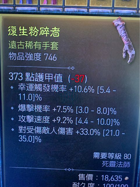 標題[競標] D4 賽季 死靈手套 三詞近頂