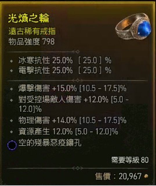 物 品:遠古稀有戒指 爆傷/受控傷/物傷/資源