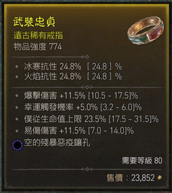 標題[競標] D4 賽季 爆傷易傷幸運 戒指(藍洞)