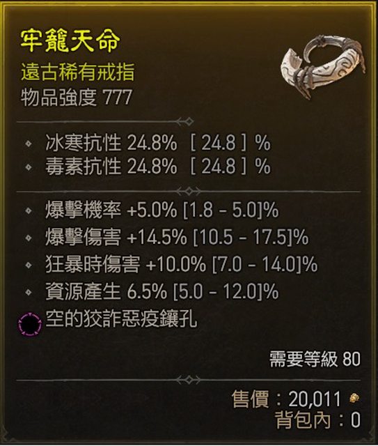 標題[競標] D4 S1 戒指 頂爆率 高爆傷 狂暴傷 資源