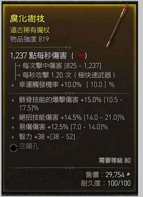 物 品 :死靈819魔杖 智力/易傷/駭骨爆