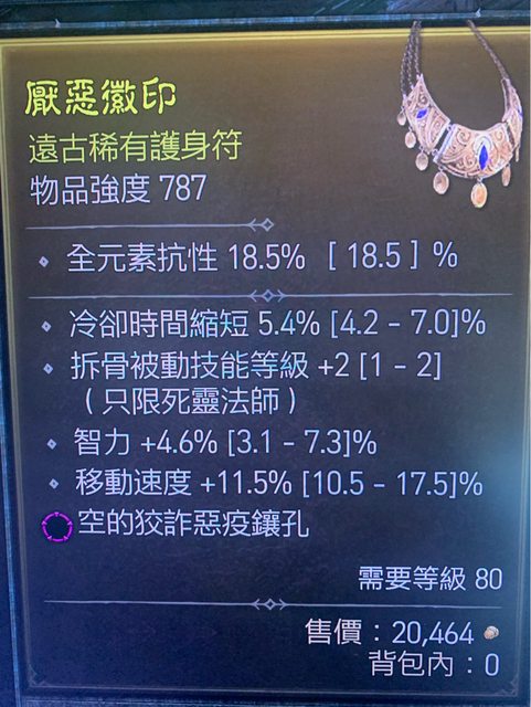 標題[競標] D4 S1 死靈拆骨 跑速護身符 狡詐孔