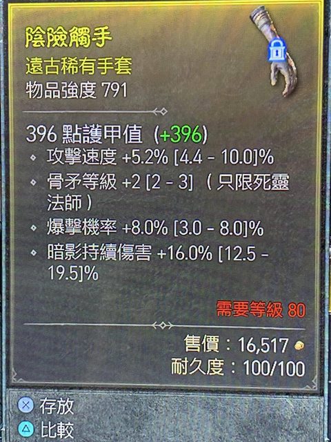 標題[交易] 死靈 S1 手套 爆擊頂、骨茅、攻速