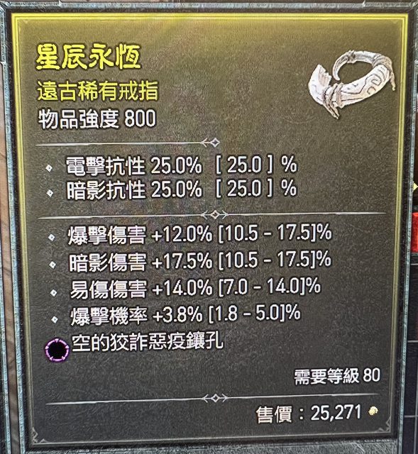 標題[競標] D4 S1 戒指 頂易傷頂暗影傷 爆率 爆傷