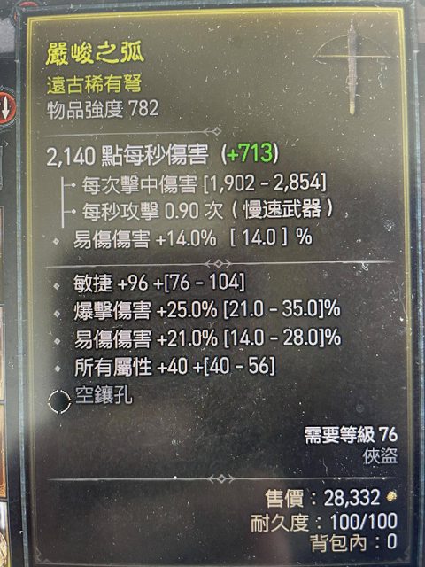 標題[競標] D4 賽季 俠盜 弩 爆傷/易傷/所有屬/敏