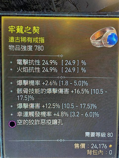 標題[競標] D4 S1 戒指 爆率/骸骨爆傷/爆傷/幸運率/