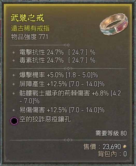 物 品:戒指 頂爆率+近頂易傷 屏障
