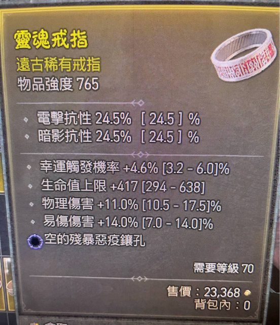 標題[競標] D4S1 藍洞戒指 頂易傷 幸運生命物理