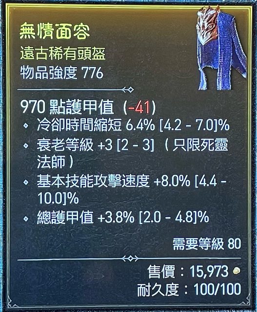標題[競標] D4賽季 頭盔 衰老/冷卻/護甲
