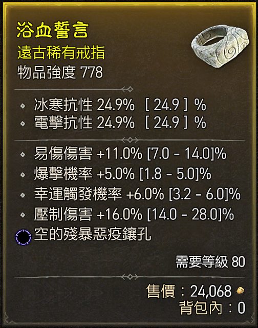 標題[競標] D4S1 戒指 頂爆率/頂幸運/易傷/藍洞