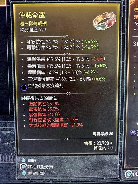 標題[競標] D4戒指 頂爆傷/爆擊/幸運